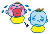 英語を直訳すると「息こらえ発作」。泣いてのどに力がはいると、反射的に脳へ行く血流が少なくなるために起こると考えられている。